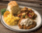 Black Bear Diner offers a hearty breakfast plate with tender steak, breaded and deep-fried, then smothered in their country gravy, served with two eggs, strip-cut hash browns or potatoes and a biscuit.